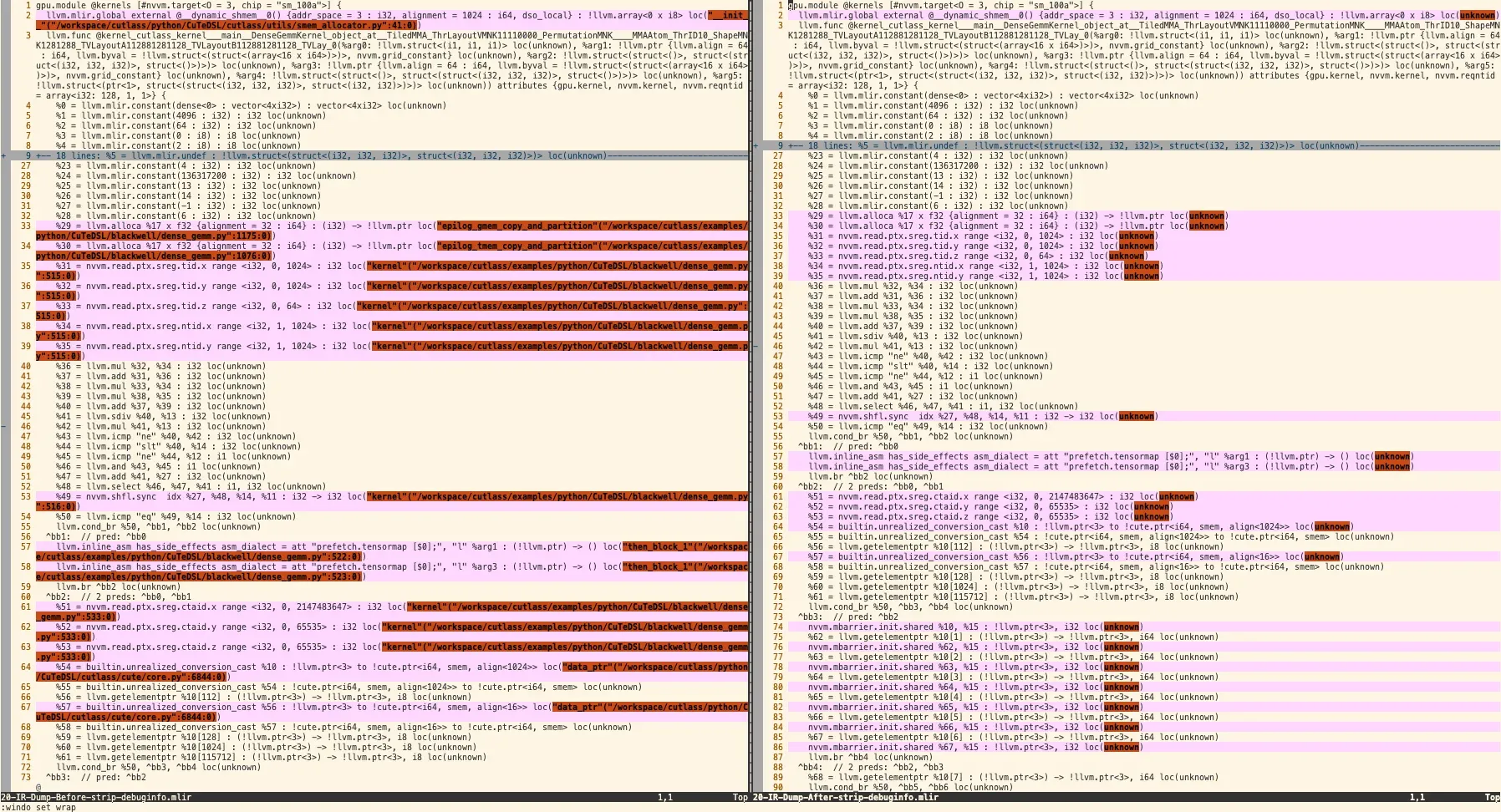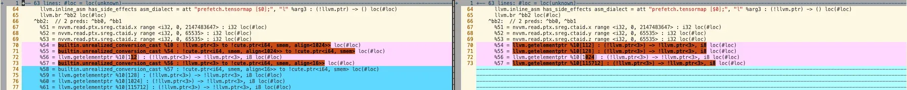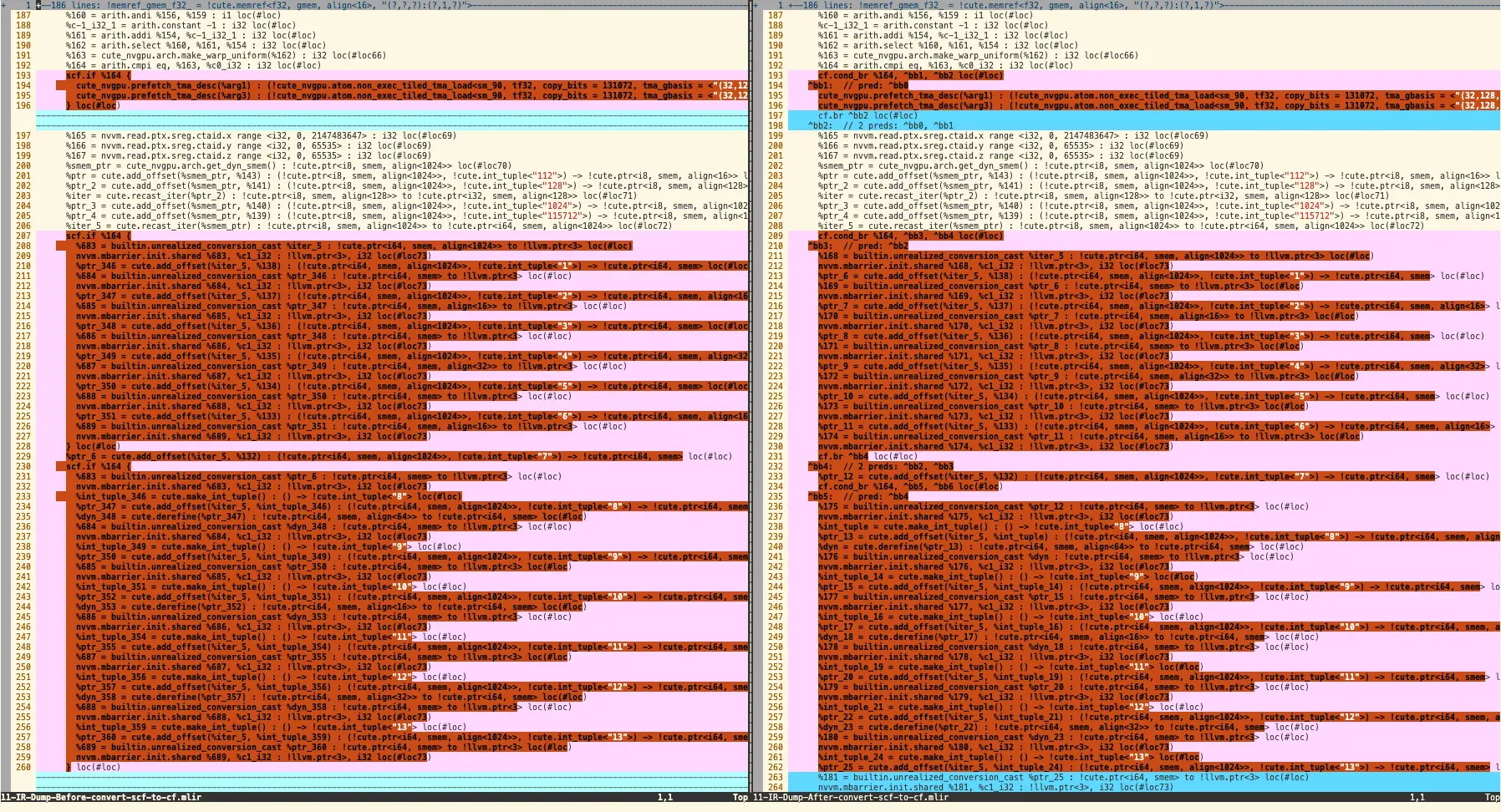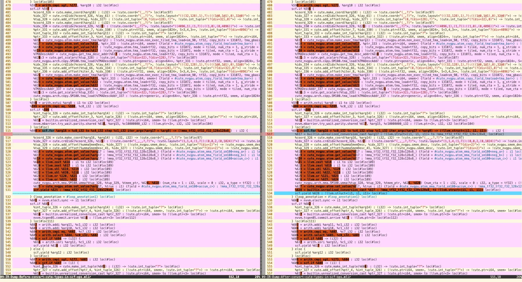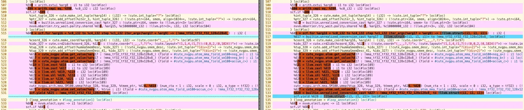 总结: CuTe C++ 高度依赖模板函数的特化,本质是将 PTX 内敛汇编 封装成模板函数,通过模板参数特化到不同的 TMA 指令;而 CuTe DSL 利用抽象出来的 cute dialect (包含 cutlass_gpu, cute_nvgpu等)逐步 lower 抽象,从 cute_nvgpu –> nvvm/scf/arith –> llvm,最后利用 llvm ir 生成 CUBIN(SASS),其中 JIT_executor 可以在 runtime 为 gpu_binary 设置动态 tensor shape。